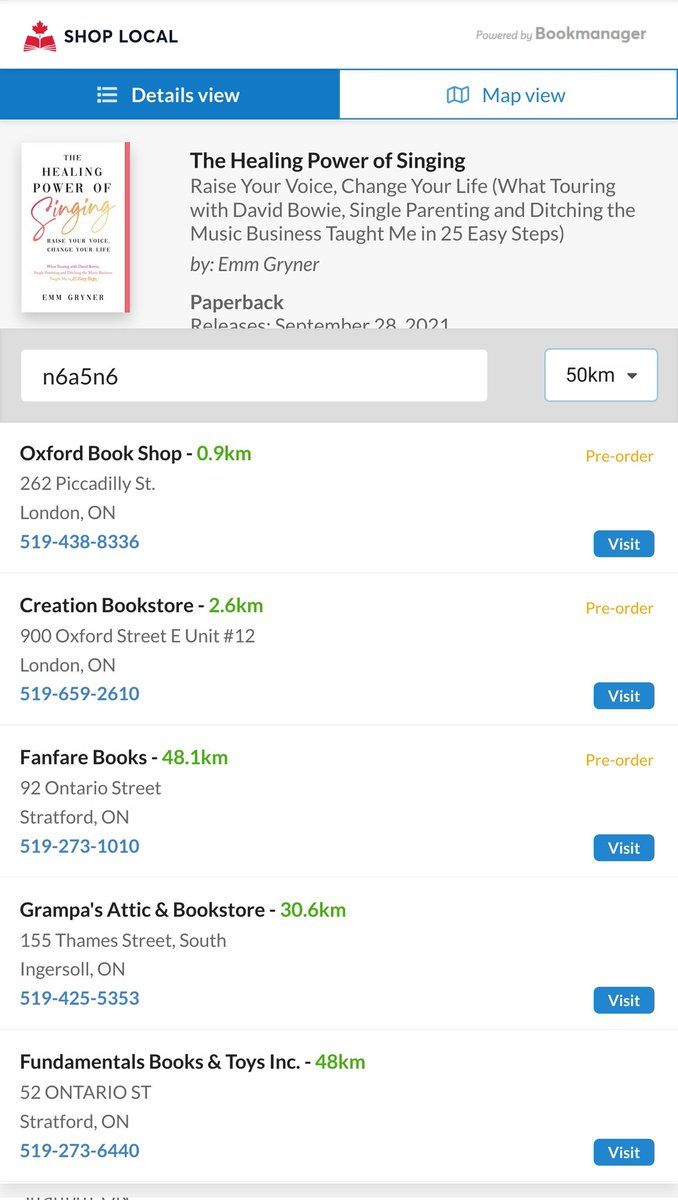 It works! Here's where to pre-order Emm's book within 50km of downtown #ldnont...