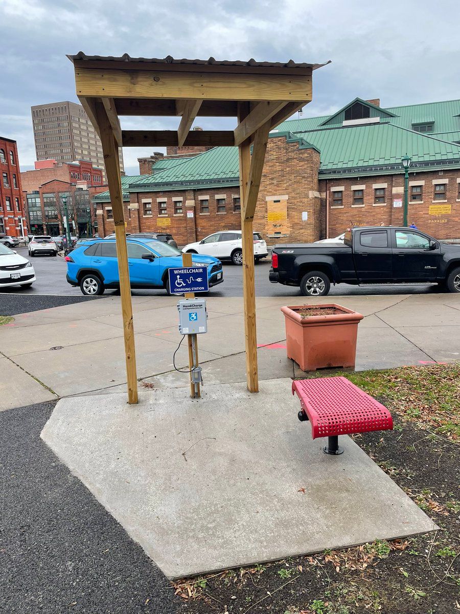 : A nice civic gesture … electric wheelchair battery charging station in #Syracuse, NY.