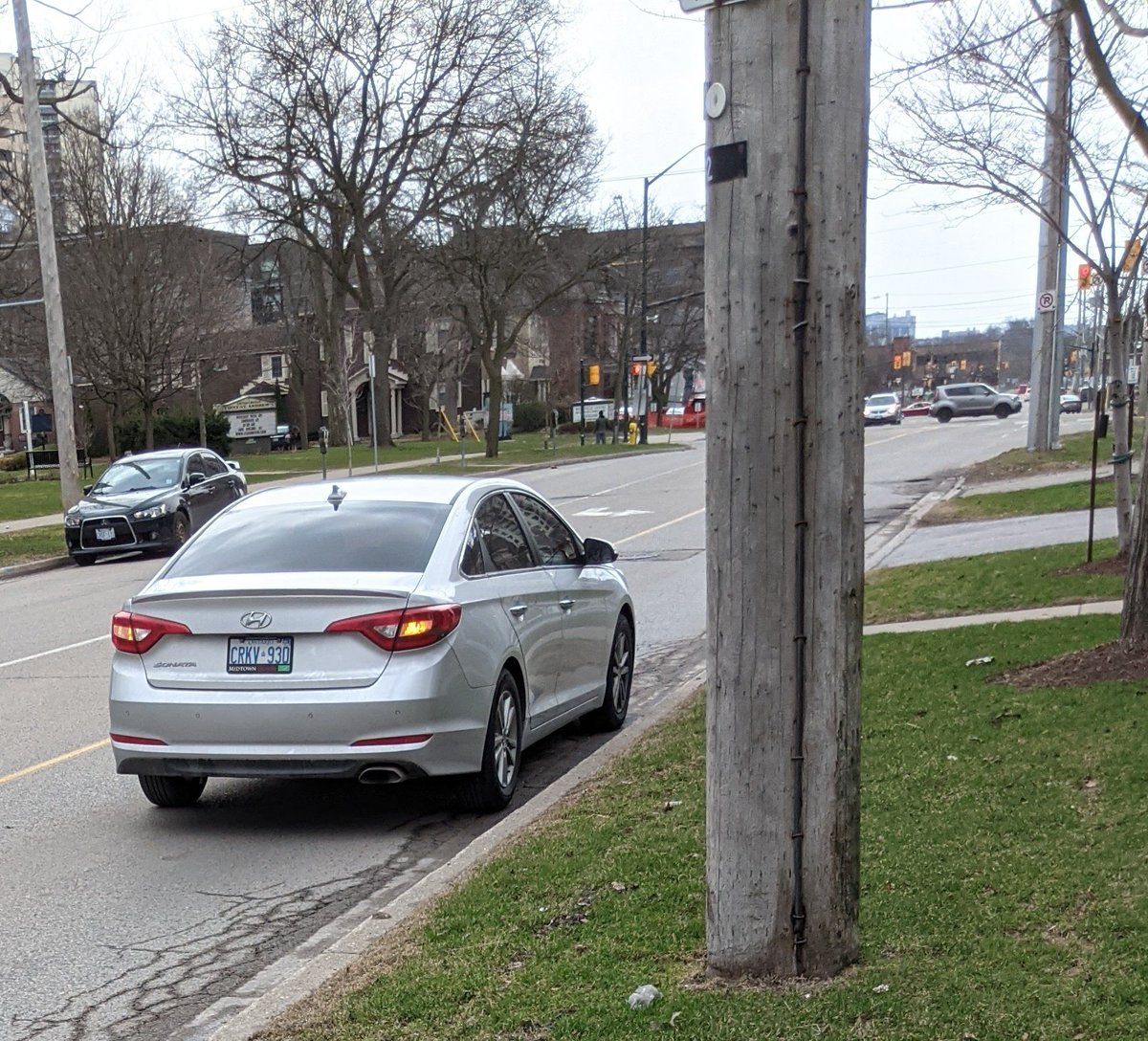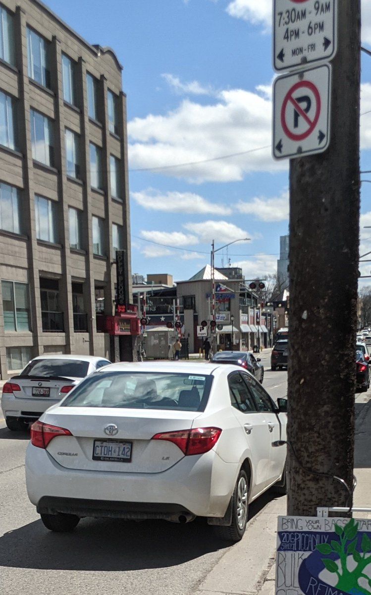 Ontario law says you're not parked if you turn your blinkers on, even if there's no one in the vehicle. (Apparently.)