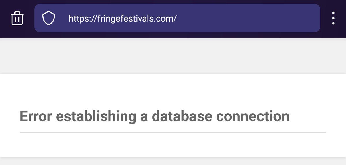 @fringefests Just a heads-up, your website has been down for a week or two; either the credentials for the database aren't right in your WordPress config file (unlikely as it was working previously) or the database server itself has an issue.
