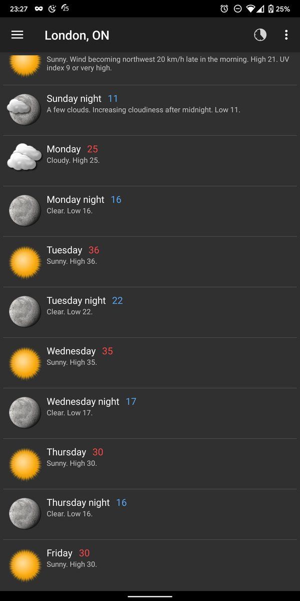 It could be worse. (Especially because this doesn't show the humidex.) I love summer as much as the next guy, but yowza.