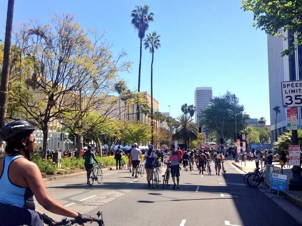 : Awesome day in LA they closed a main Street 7 miles along the middle of town for walking and biking!