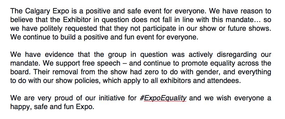 : At the #CalgaryExpo, we are all about #ExpoEquality. Here's the scoop on what happened today. :)
