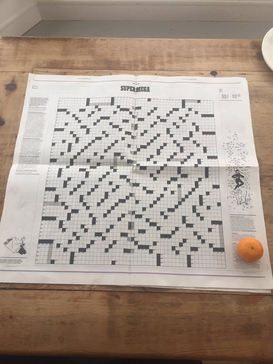 : Largest crossword in history of NYT, now loose in the wild (shown with clementine for scale).